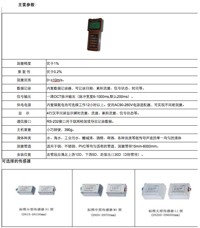 手持式超聲波流量計,具有測量精度高、數(shù)據(jù)自動存儲、全中文顯示、操作靈活等特點(diǎn)。